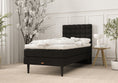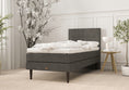 Emma kontinentalsengen er designet til let montering. Boxmadrassen måler 90x200x21 cm og springmadrassen på 90x200x19 cm, som er fleksibel, hvilket gør transport gennem døre og trapper nem. Benene findes i en pose under boxmadrassen, og topmadrassen leveres udrullet klar til brug med det samme. Gavlen fastgøres nemt i de præmonterede skinner på boxmadrassen.