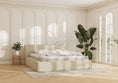 Både madras og ramme er betrukket med møbeltekstil, der er lamineret med 3 mm skum. Det giver en mere ensartet kontaktflade, bedre formstabilitet og en diskret, taktil blødhed, som understreger sengens eksklusive udtryk.